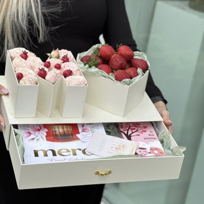 Коробка-шкатулка Буква "М"с цветами и вкусняшками!