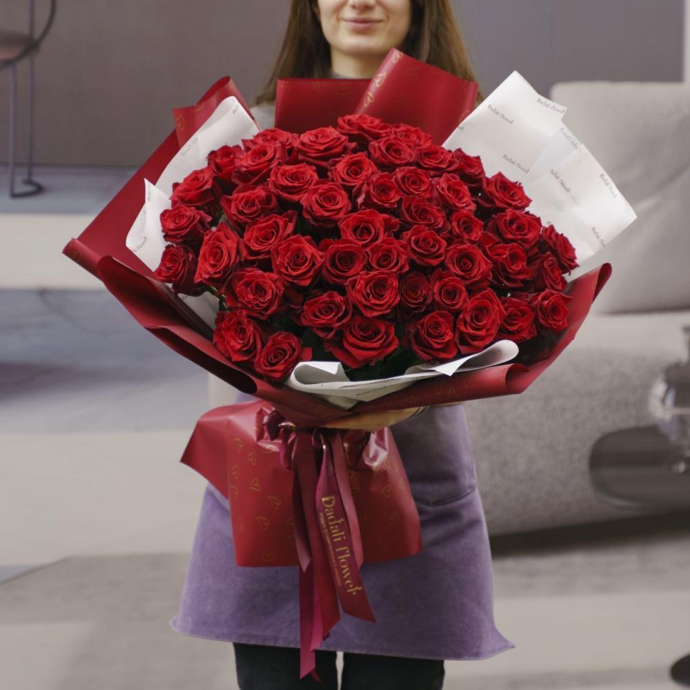 Роскошный Букет из коротких красных роз. Вы всегда можете купить такой букет с доставкой в нашем онлайн магазине цветов и подарков, находящийся в г.Нальчике. Опытные флористы сформируют ваш букет из свежих цветов, и курьер в течении часа доставит Ваш букет по адресу лично в руки получателю, получив в ответ благодарную улыбку.