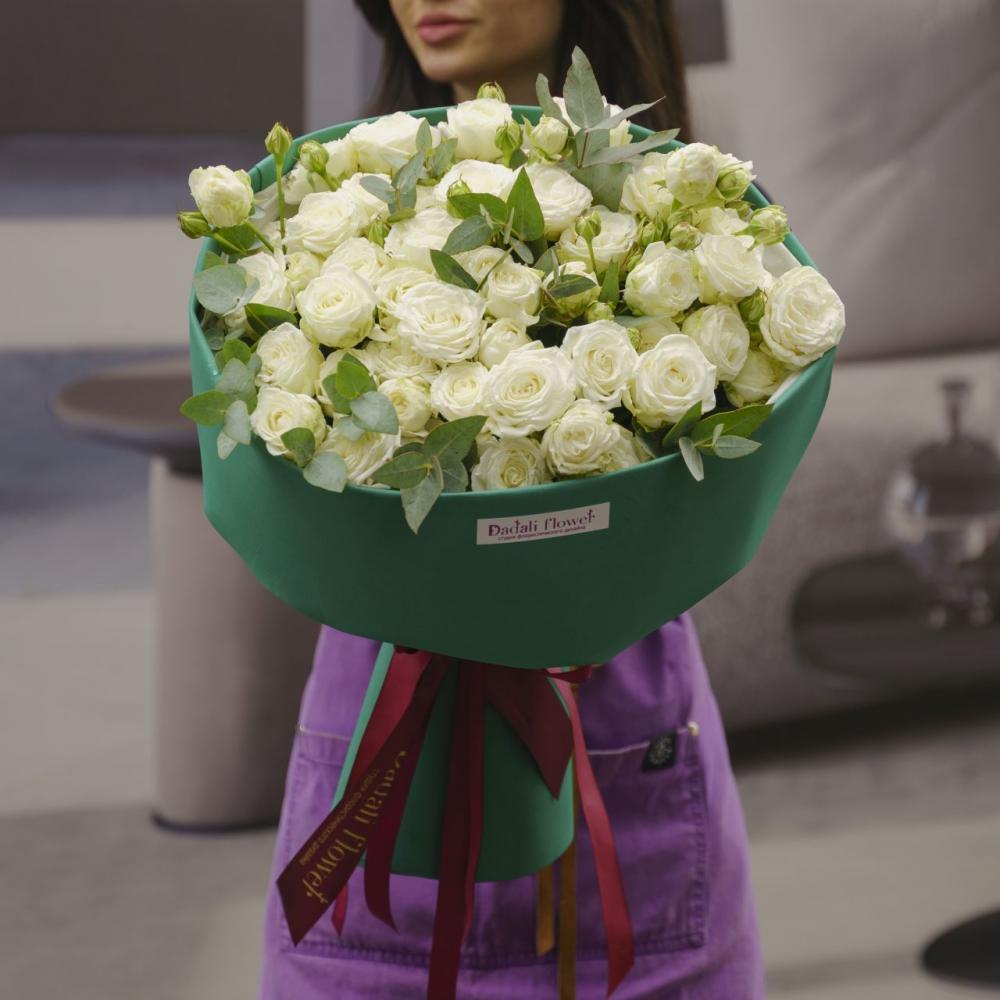 Роскошные белые пионовидные кустовые розы - настоящий праздник, когда получаешь в подарок их. Вы всегда можете купить такой букет с доставкой в нашем онлайн магазине цветов и подарков, находящийся в г.Нальчике. Опытные флористы сформируют ваш букет из свежих цветов, и курьер в течении часа доставит Ваш букет по адресу лично в руки получателю, получив в ответ благодарную улыбку.