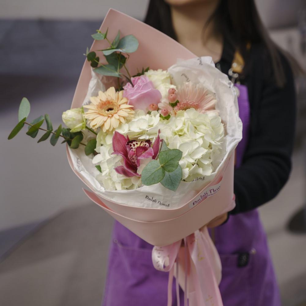 Каждый наш букет - дизайнерская композиция. Все их невозможно повторить в точности из за сезонности и природной уникальности внешнего вида каждого цветка. Но мы сохраним размер, атмосферу и стилистику.