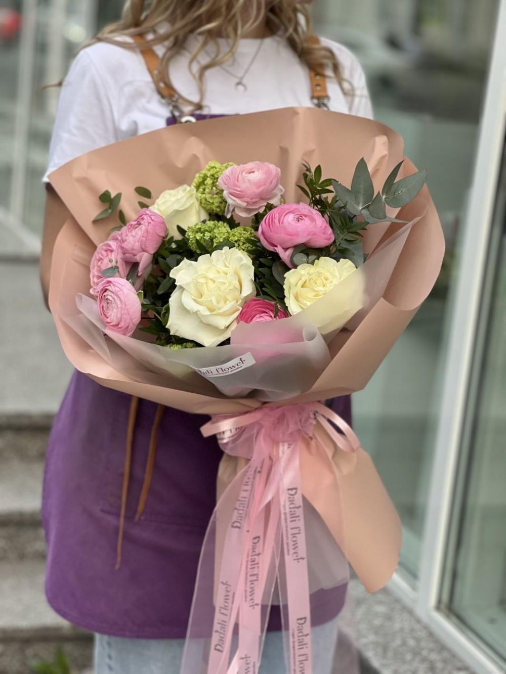 Каждый наш букет - дизайнерская композиция. Все их невозможно повторить в точности из за сезонности и природной уникальности внешнего вида каждого цветка. Но мы сохраним размер, атмосферу и стилистику.
