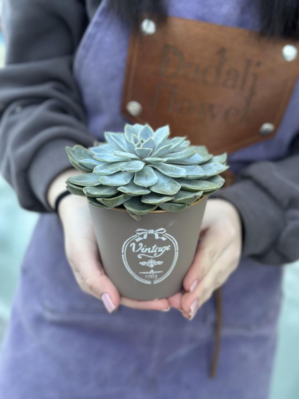 КАШПО ВИНТАЖ С СУКУЛЕНТОМ